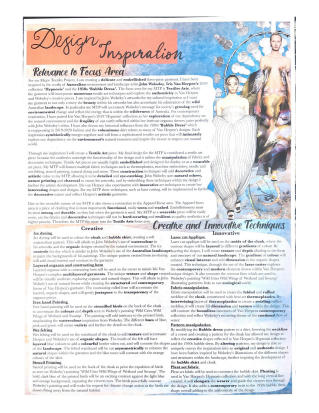 The pages selected for each project reflect the individual students' interpretations of the syllabus guidelines for the MTP. Each student should develop their folio according to the guidelines, relating to their own individual project. This may result in a variety of presentation styles, numbers of sketches and/or experiments.