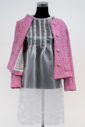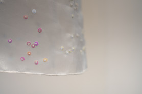 "The application of glass beads and white sequins adds texture and interest to the dress. It also allows the garment to sparkle and shimmer with movement, adding to the lustre of the crystal organza."