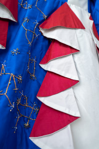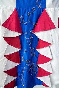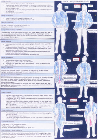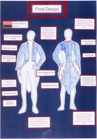 "The back of the jacket features hand embroidered and beaded star constellations that run down the length of the centre back. These reference David Bowie in his performances of Ziggy Star Dust and Space."