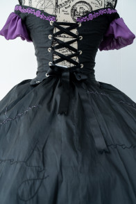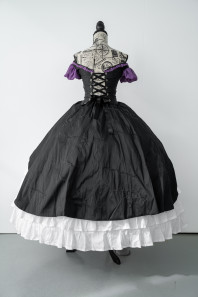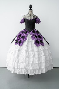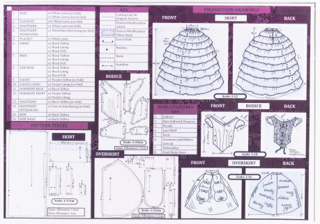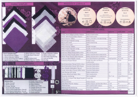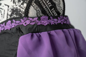 "By hand dyeing the purple fabric and lace I was able to keep the same colour throughout the different fabrics and notions. The purple colour also complemented the otherwise achromatic black and white design and added pops of colour throughout the pieces."