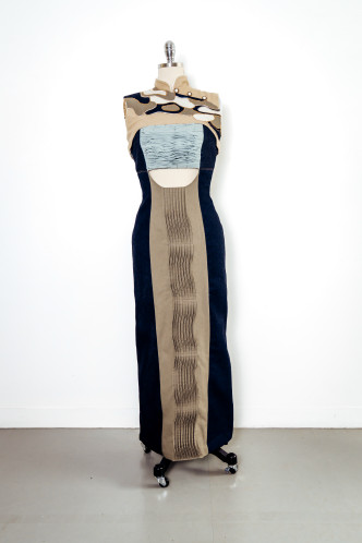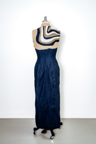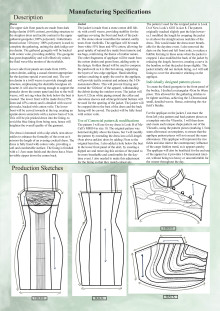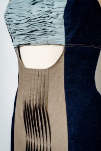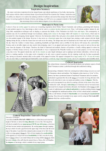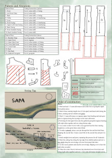 The textile item draws inspiration from the tranquil beauty and cultural significance of rice fields, interweaving their essence with the often-overlooked charm of post-Second World War countries like Vietnam. Amidst the scars of conflict, the student’s objective is to explore the enduring symbols of resilience and renewal that emerge from these landscapes. In weaving together the threads of history and heritage, the textile serves as a poignant reminder of the beauty that can emerge from even the darkest chapters of our collective past. With a focus on Mother Nature’s femininity and resilience, the design can worn to a summer daytime high-end event. Aesthetic features include fabric manipulation techniques such as draping, to represent the fluidity of the Vietnamese rice field’s lines and shapes. This contemporary inspiration may also be symbolised through waved pintucks, adding tactile texture to the design which heightens visual interest. The harmonious darker blue and green colour palette derived from the rice fields emphasise the aesthetic appeal of the design. As the design is styled for summer the fabric is breathable and light weight chiffon for the sleeves to increase the comfort.