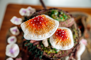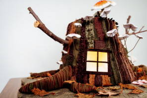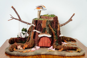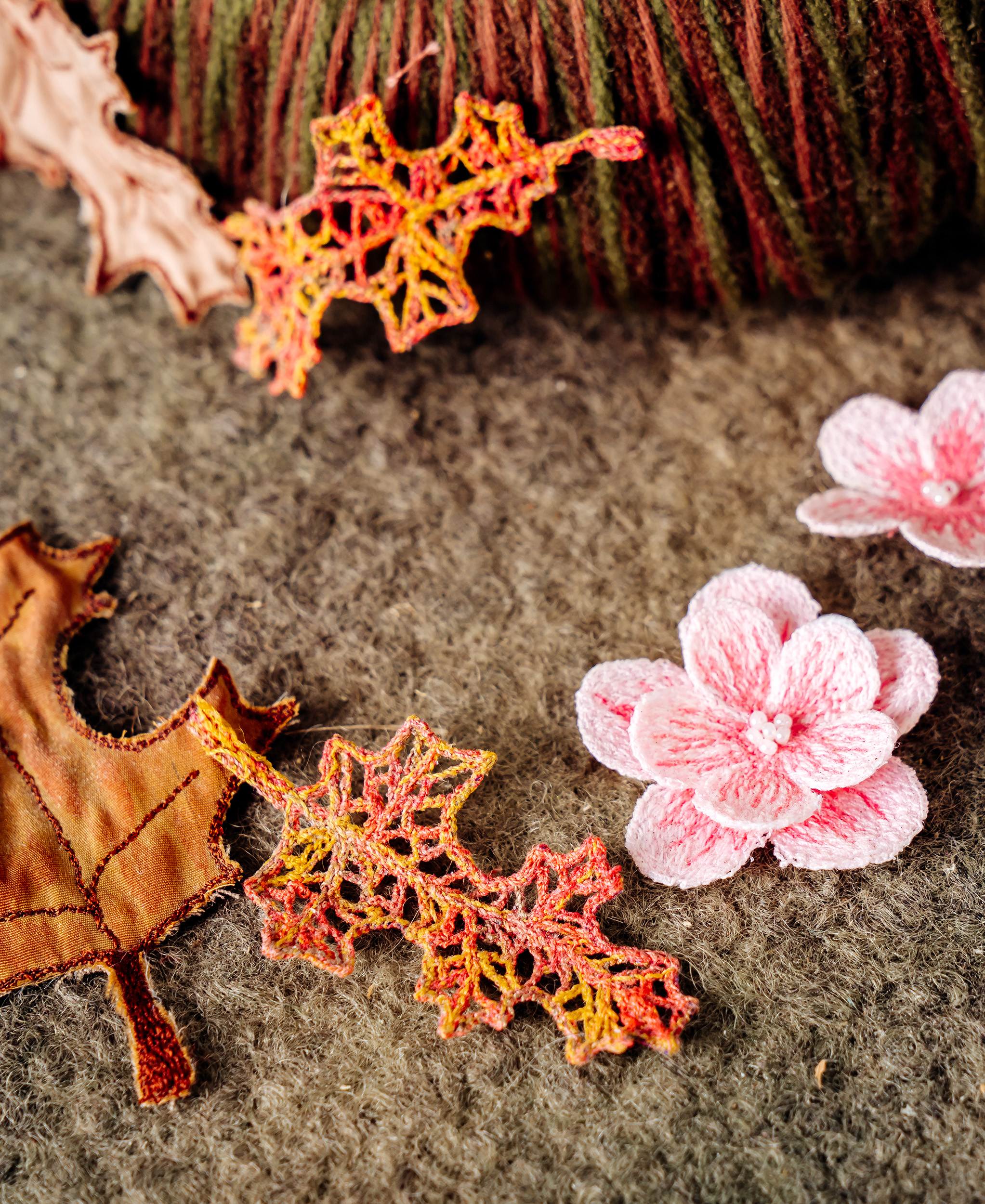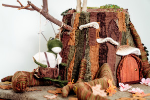 "Free motion embroidery is used to create the 3D shapes that surround the trunk."