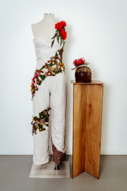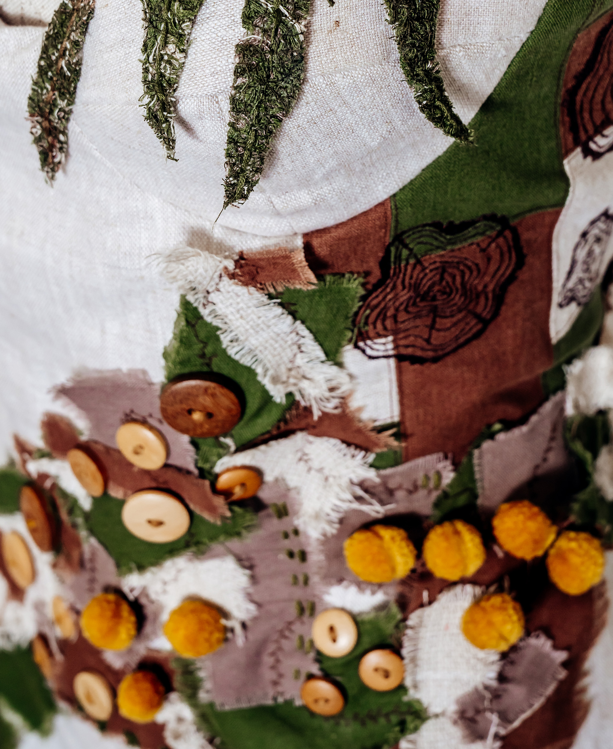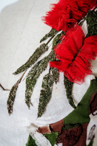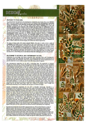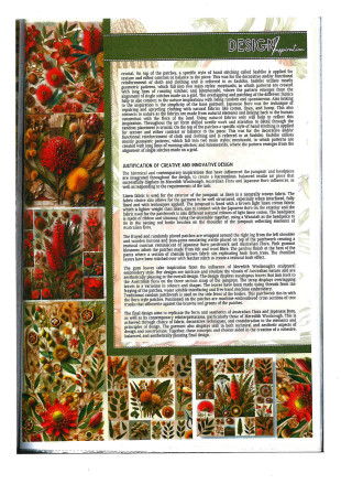 "Fabric manipulation creates the native Australian flowers. Free motion embroidery using solvy has been used to create the leaves."
