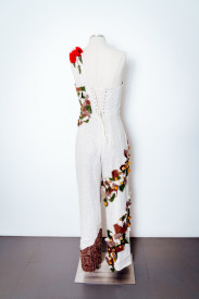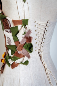 "Boro panel applied to corset top. The main fabric of the corest has been embelished with block printing."